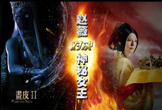 Posters of Wuershan's Painted Skin 2 with an unknown blue-eyed mystery queen appears on the left in each poster. Netizens suspect a viral marketing campaign.